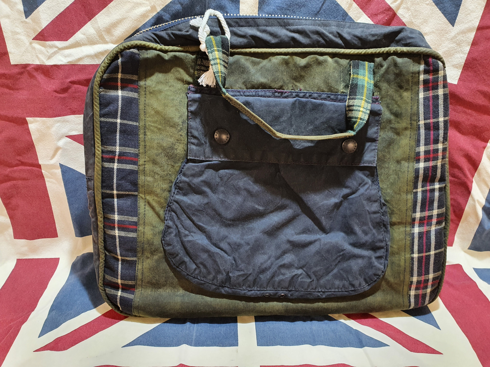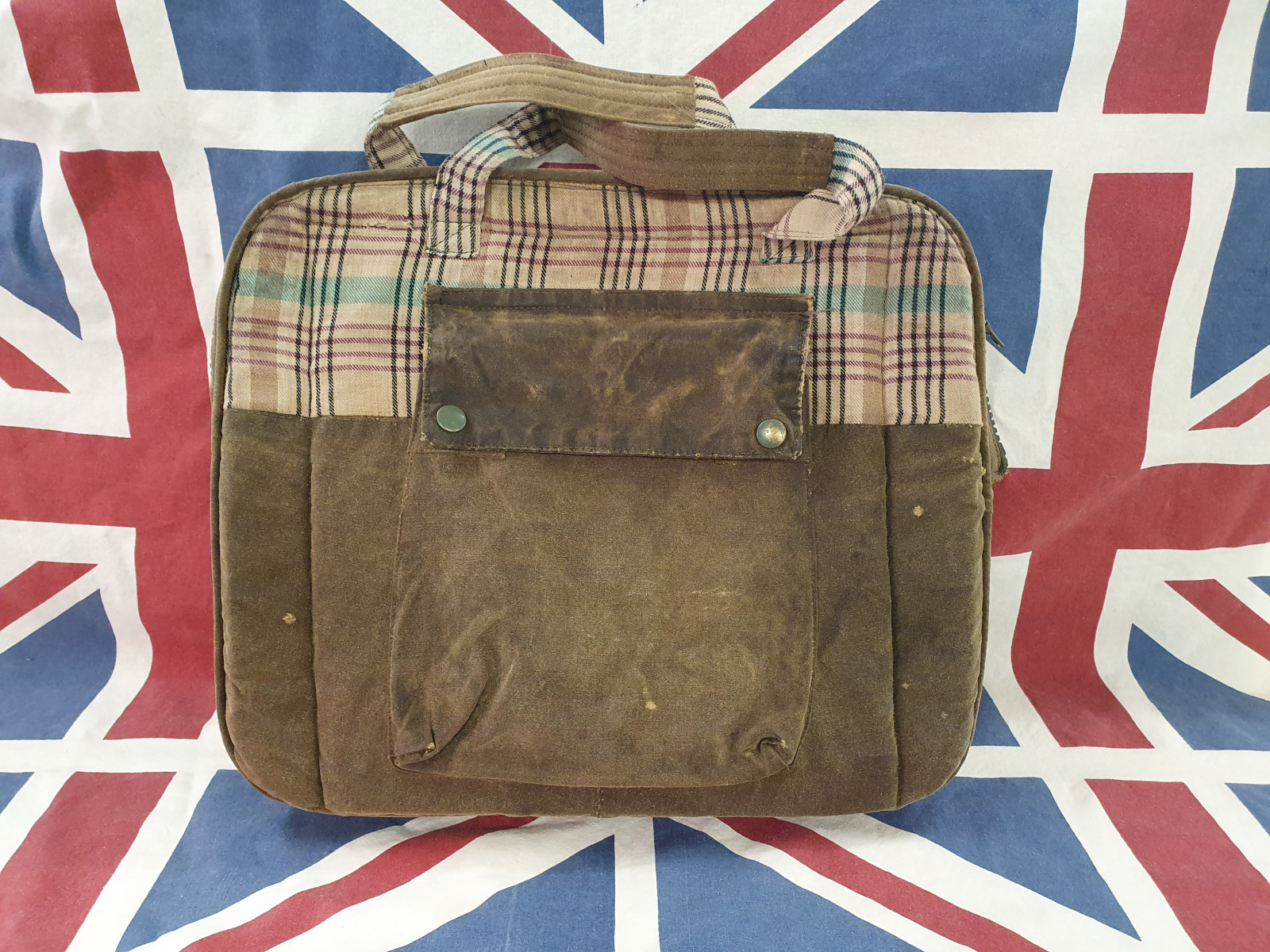 This laptop bag is a random assortment of our stock Barbour jackets, a potpourri of class, all of which were unwearable. Now, new life has been breathed into the fibres!