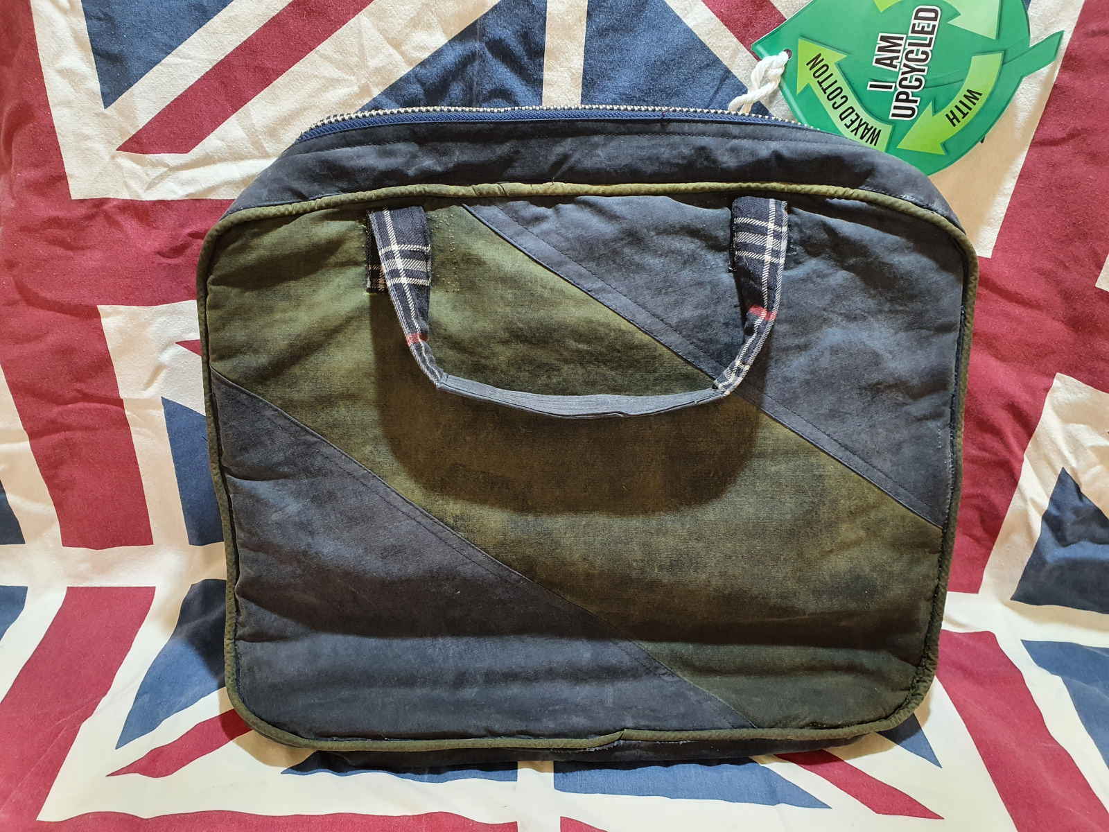 This laptop bag is a random assortment of our stock Barbour jackets, a potpourri of class, all of which were unwearable. Now, new life has been breathed into the fibres!